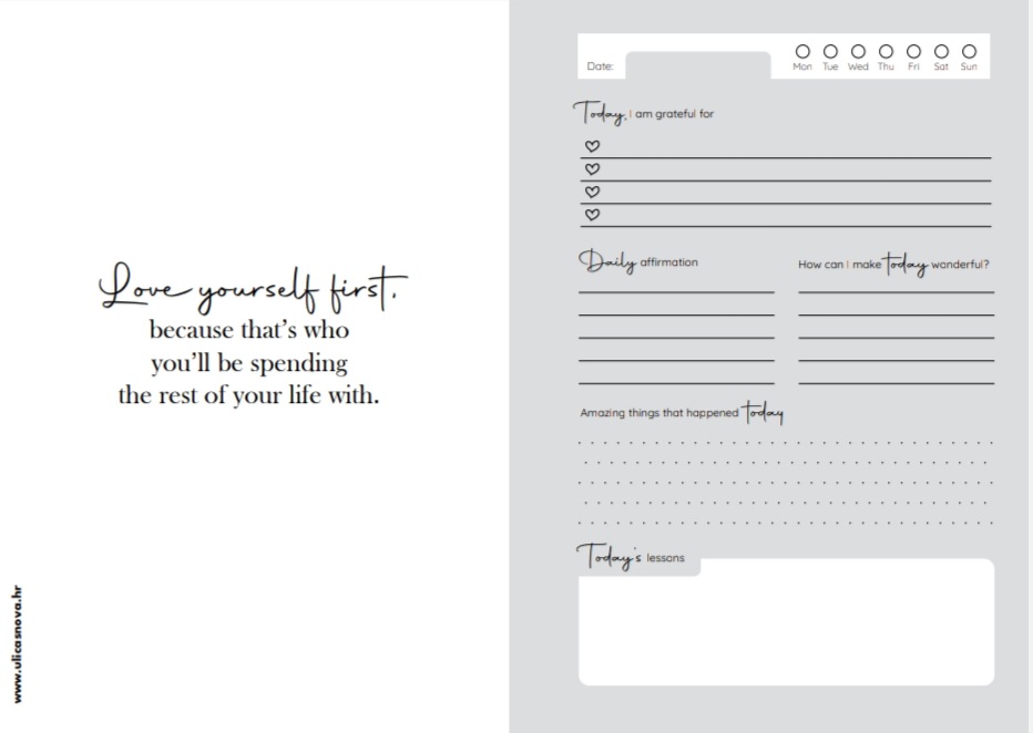U današnjem ubrzanom svijetu, lako je zaboraviti na sitnice koje život čine posebnim. Upravo zato s velikom radošću predstavljamo My Gratitude Planner. Ovaj jedinstveni planer dizajniran je kako bi vas svakodnevno podsjećao na ljepotu života i poticao vas da izražavate zahvalnost za sve dobro što vas okružuje.