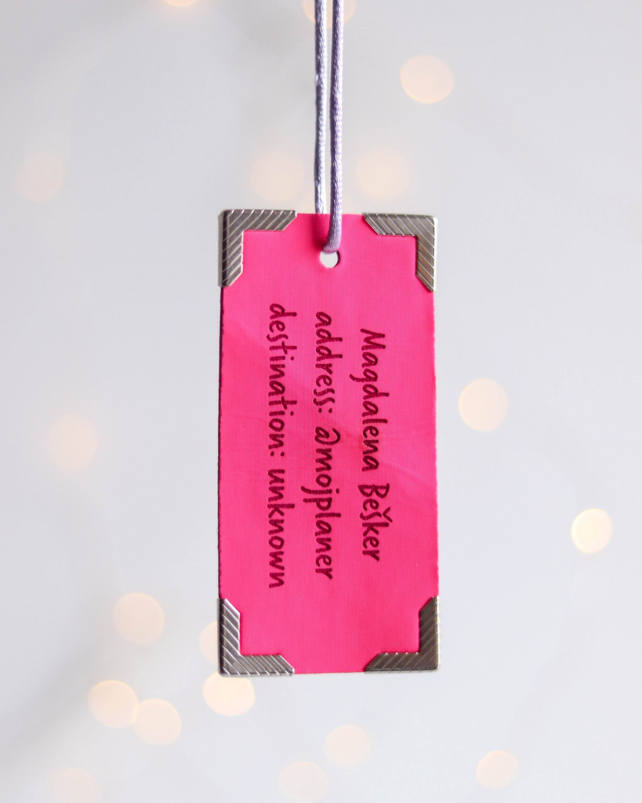 Uz naše privjesnice, vaša prtljaga postaje lako prepoznatljiva i sigurnija. Svaka privjesnica je elegantno personalizirana s vašim podacima, što olakšava pronalazak kovčega i dodaje osobni pečat vašim putovanjima.